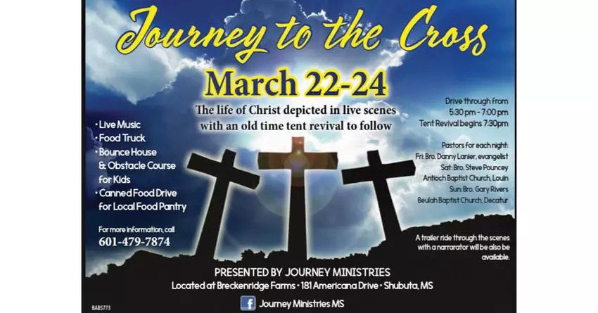 With Easter quickly approaching, Journey Ministries is excited to host another amazing production with Journey to the Cross at Breckenridge Farms, located at 181 Americana Dr. in Shubuta, on March 22 – March 24. The event is free to attend.