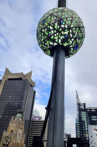 NEW YORK (AP) — The confetti has been tested for airiness. The giant numerals – 2 0 2 4 – are in place. And the luminous ball, bedazzled with 2,688 crystal triangles, is fixed to the pole from which it makes its 60-second descent at 11:59 p.m.