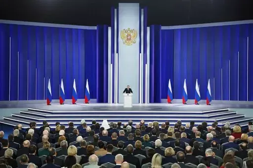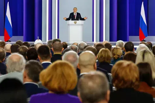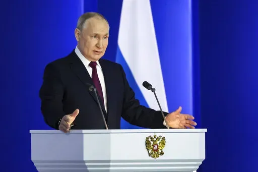 MOSCOW (AP) — Russian President Vladimir Putin declared Tuesday that Moscow was suspending its participation in the New START treaty — the last remaining nuclear arms control pact with the United States — sharply upping the ante amid tensions with Washington over the fighting in Ukraine.