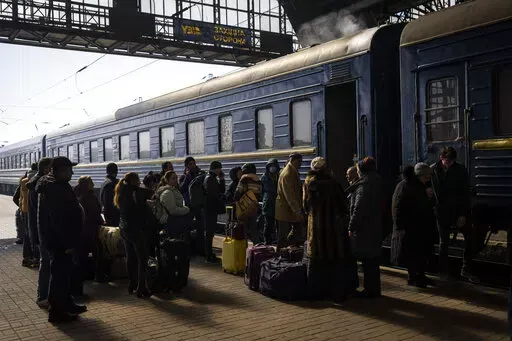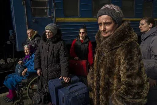The city council said Sunday that nearly 40,000 people have used their own vehicles to leave the city via a humanitarian corridor over the past week — nearly 10% of its 430,000 population. Other fleeing residents arrived by train Sunday in Lviv.