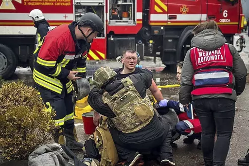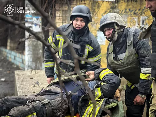 KYIV, Ukraine (AP) — A Russian ballistic missile attack blasted homes in the southern Ukrainian city of Odesa on Friday, followed by a second missile that targeted first responders who arrived at the scene, officials said. At least 16 people were killed.