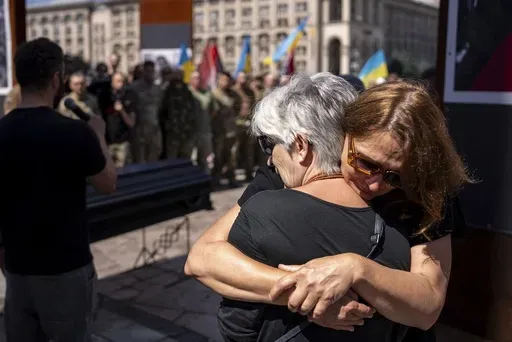 At the farewell ceremony, Ukrainian soldiers carried Fouché's coffin through Kyiv’s landmark Independence Square, the site of mass protests in 2014 that forced out a pro-Russian president, towards a memorial for the country's fallen defenders. Fouché's comrades held back tears as they lined up to say goodbye. Mourners read prayers as they held up Ukrainian flags and military banners.