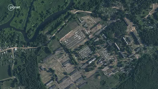 The images provided by Planet Labs PLC suggest that dozens of tents were erected within the past two weeks at a former military base outside Osipovichi, a town 230 kilometers (142 miles) north of the Ukrainian border. A satellite photo taken on Jun. 15 shows no sign of the rows of white and green structures that are clearly visible in a later image, dated Jun. 30.