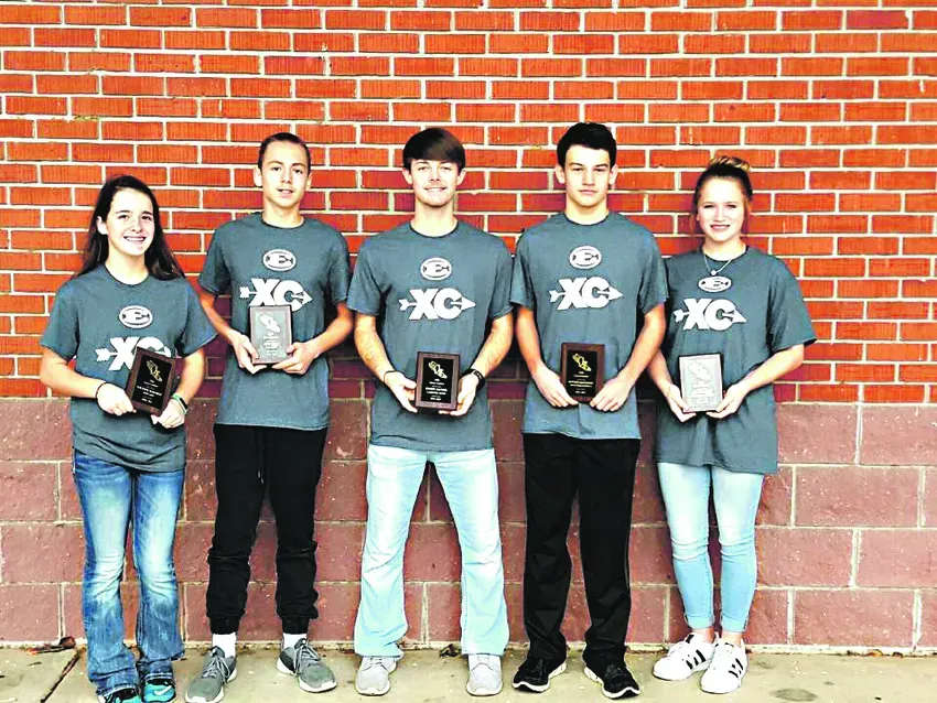 EHS 2015 Football Awards: Left to Right: Derrick Moore, All-Division; Jacob Gunn, All-Division; Chris Milsap, All-Division; Dalton Baxley, All-Division; Jacob Cunningham, Mac Hamburg Award; Grant Valverde, All-Division; Zack Wilkerson, All-Division; Landon Keely, All-Division AND All-State.