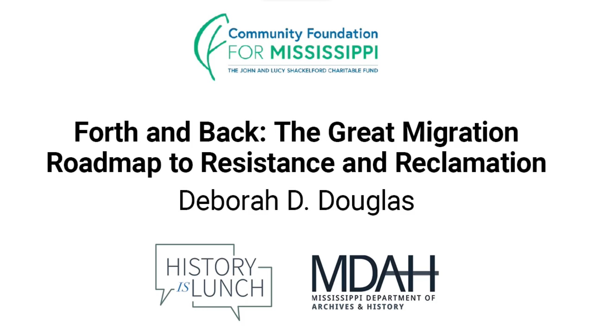 On April 13, 2022, Deborah D. Douglas presented “Forth and Back: The Great Migration Roadmap to Resistance and Reclamation” as part of the History Is Lunch series.