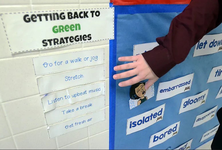 Cards such as this one assists students on how to cope with various emotions they experience during their school day at Trent Lott Academy, Friday, Feb. 25, 2022. Credit: Vickie D. King/Mississippi Today