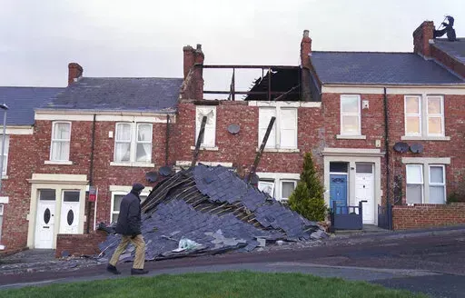 In the U.K., a 9-year-old boy in Staffordshire, England, and a 60-year-old woman in Scotland were killed Saturday by falling trees as strong winds battered northern parts of Britain.