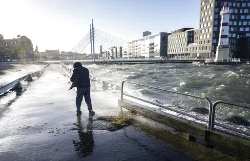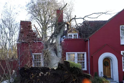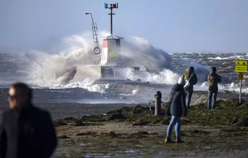 HELSINKI (AP) — A powerful winter storm swept through northern Europe over the weekend, killing at least four people, destroying houses and cars, closing bridges and causing flooding and halting transport while leaving thousands of households without electricity.