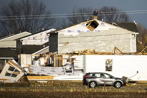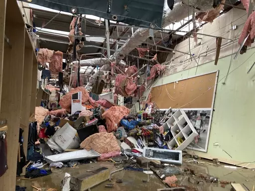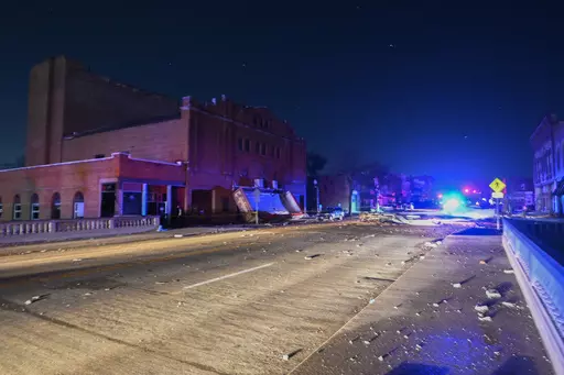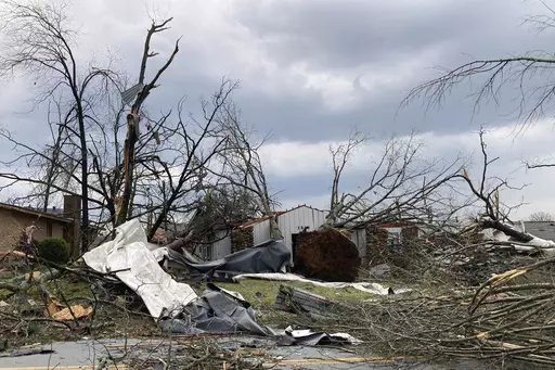 LITTLE ROCK, Ark. (AP) — A monster storm system tore through the South and Midwest on Friday, spawning deadly weather including tornadoes that shredded homes and shopping centers in Arkansas, collapsed a theater roof during a heavy metal concert in Illinois and made a fatal sweep into rural Indiana.