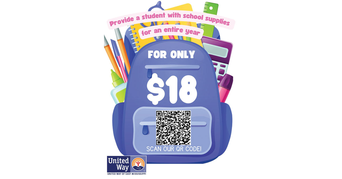 The United Way of East Mississippi’s Stuff the Bus for Clarke County will take place on July 16 from 9:00 a.m. to 3:00 p.m. across the street from Chickasawhay Natural Gas.