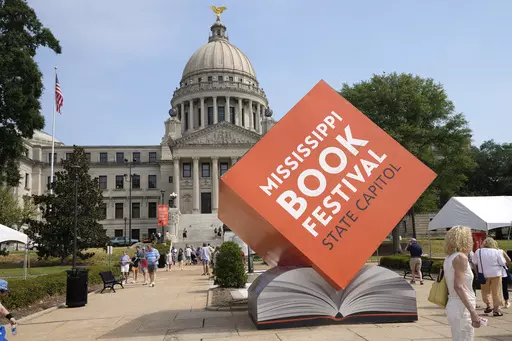 The temperature reached a record high for the date of 104 F (40 C) Saturday in Jackson, Mississippi, as people walked between indoor and outdoor events at the Mississippi Book Festival. Volunteers distributed chilled water, and people used handheld fans while chatting with authors and shopping for books at large tents outside the state Capitol building.