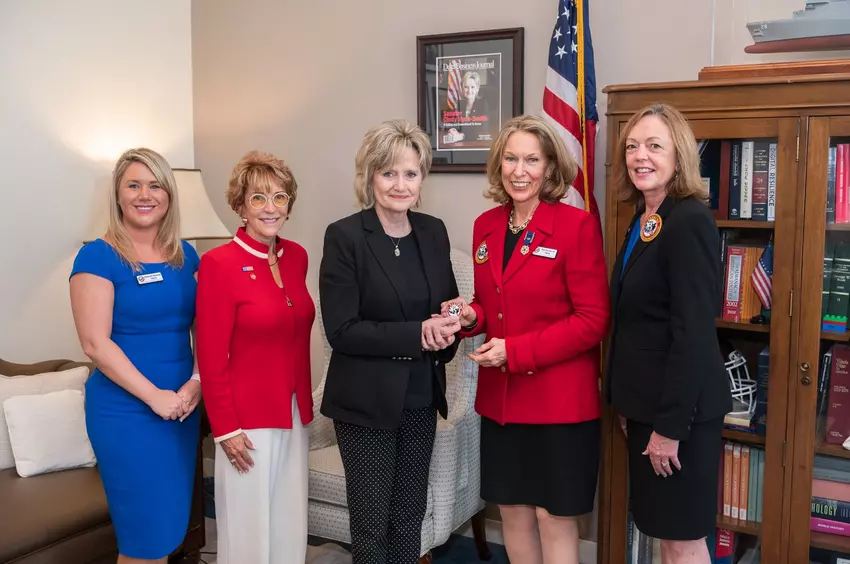 U.S. Senator Cindy Hyde-Smith (R-Miss.) on Wednesday met with Tragedy Assistance Program For Survivors (TAPS) representatives following her introduction of a resolution designating Sept. 19-25, 2021, as Gold Star Families Remembrance Week. Pictured from left: Ashlynne Haycock, TAPS deputy director; Dr. Lynda Davis, TAPS senior advisor; Bonnie Carroll, TAPS president and founder; and Candace Wheeler, TAPS director.