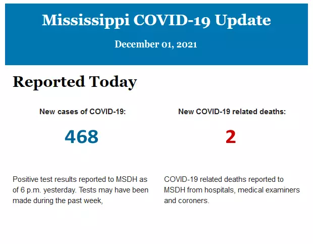 Listed below is the daily COVID-19 update for the state of Mississippi.