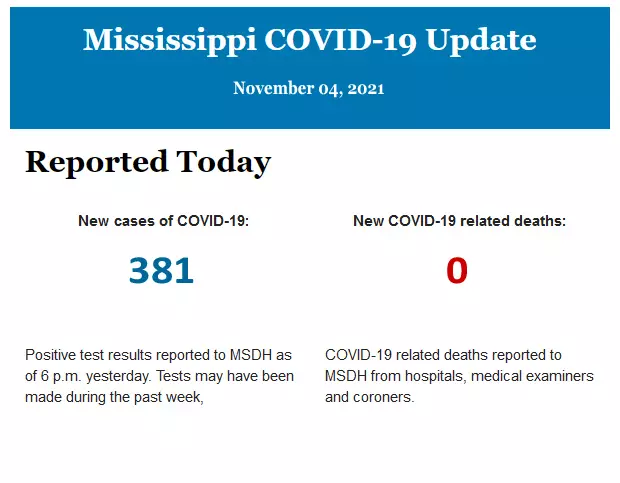 Listed below is the daily COVID-19 update for the state of Mississippi.