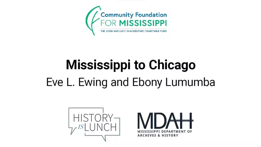 On July 20, 2022, author and sociologist Eve L. Ewing and Ebony Lumumba presented “Mississippi to Chicago” as part of the History Is Lunch series. The program was part of a joint 2022 initiative by MDAH and the Mississippi Museum of Art focusing on the Great Migration.