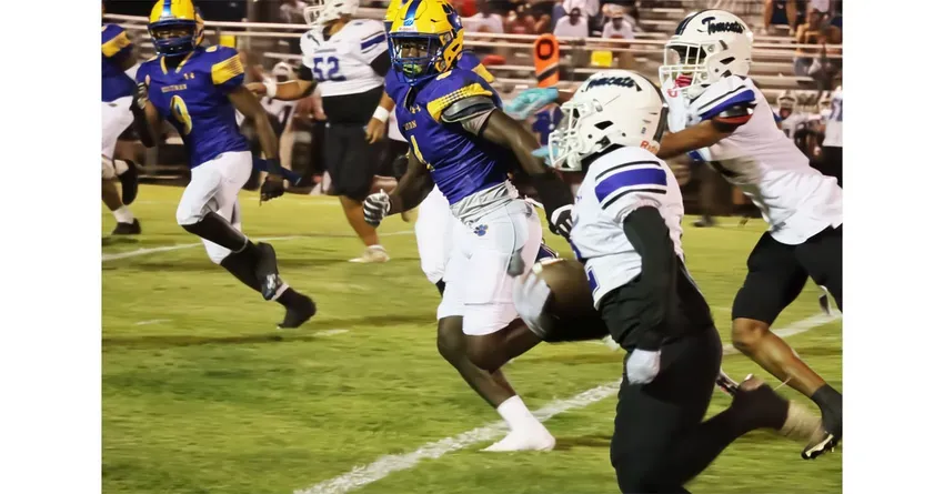 After the long drive back from Harrison Central, the Panthers prepared for one of the most controversial games of the season. It all started on the 50 for the coin toss. Jaleil Cameron, Shawn Coleman, Akylin Dear, and Justin Bilbrew were captains for the coin toss that determined that the Panthers would kick off the game.