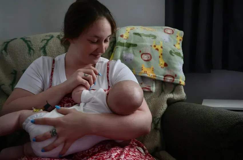 State Rep. Timaka James-Jones, right, holds a photo of her late niece, Harmony Ball-Stribling, during a press conference for Black Maternal Health Week at the Mississippi Capitol in Jackson, Miss., on Monday, April 14, 2025. Ball-Stribling and her unborn daughter, Harper, died in 2021 after a medical emergency in a rural community without 24-hour emergency care. James-Jones joined advocates in calling for improved maternal health policies across Mississippi. Credit: Eric Shelton/Mississippi Today
