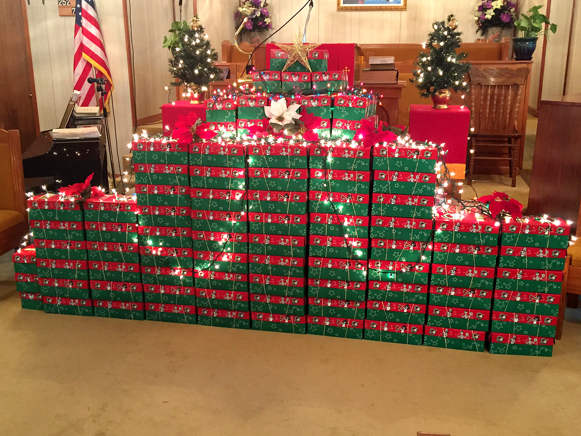 The litany of dedication of 300 Operation Christmas Child Shoebox Gifts was led by Mrs. Johnnie Thurman, and Pastor Marvin Evans offered the prayer of dedication.