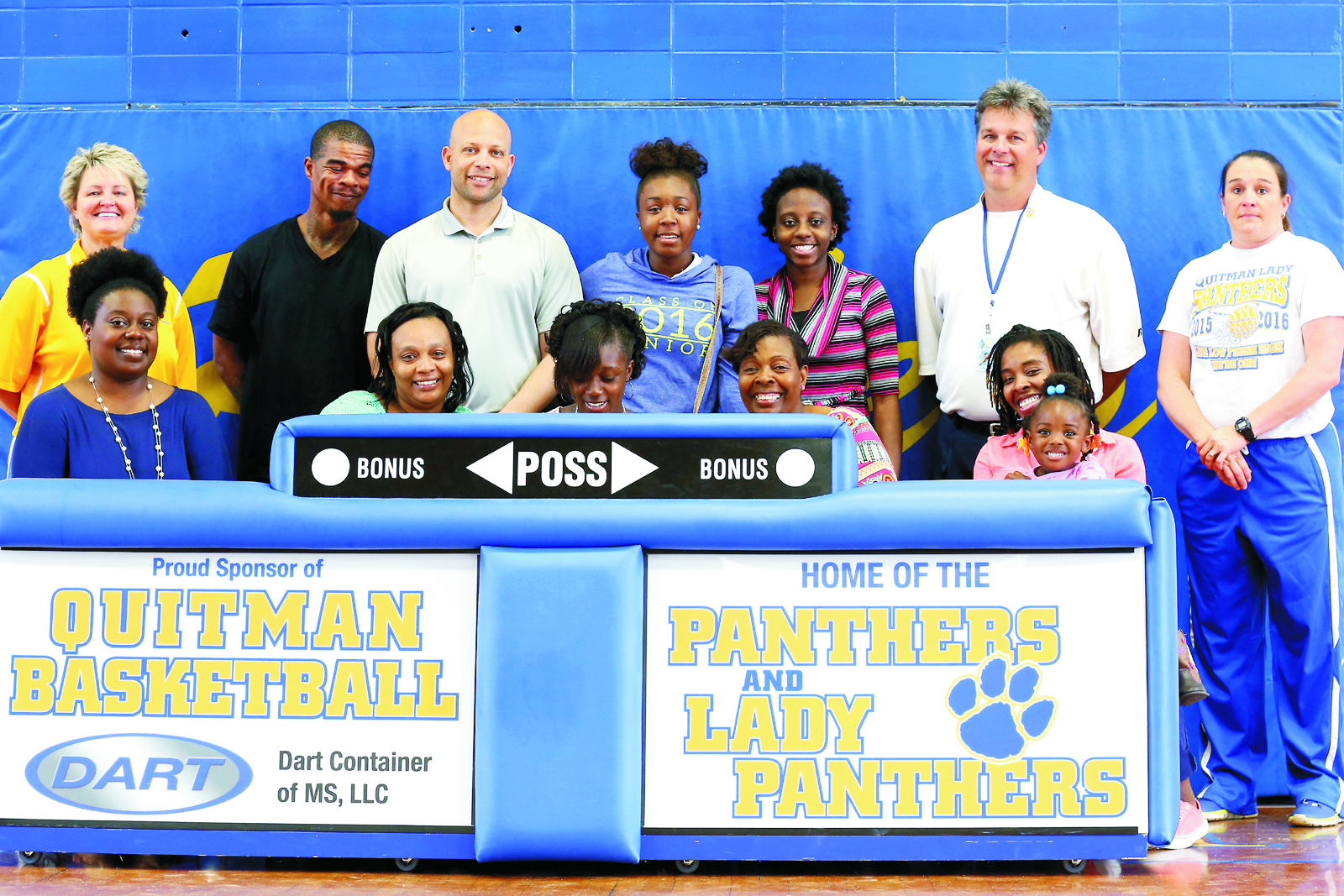 Lady Panther Sendreca Howard signed a letter of intent to be a member of Meridian Community College's Track and Field Team. A ceremony was held in the QHS Gym on Wednesday, May 18th. In attendance and pictured here were (top row, left to right) Gina Skelton, Toriano Howard, Michael McDonald, Lanequie Howard, Jasmine Jackson, Steve Hampton, Danielle Haney, (bottom row, left to right) Kandis Blakely, Courtnea Howard, Sendreca Howard, Tammy Howard, and Tiana Howard.