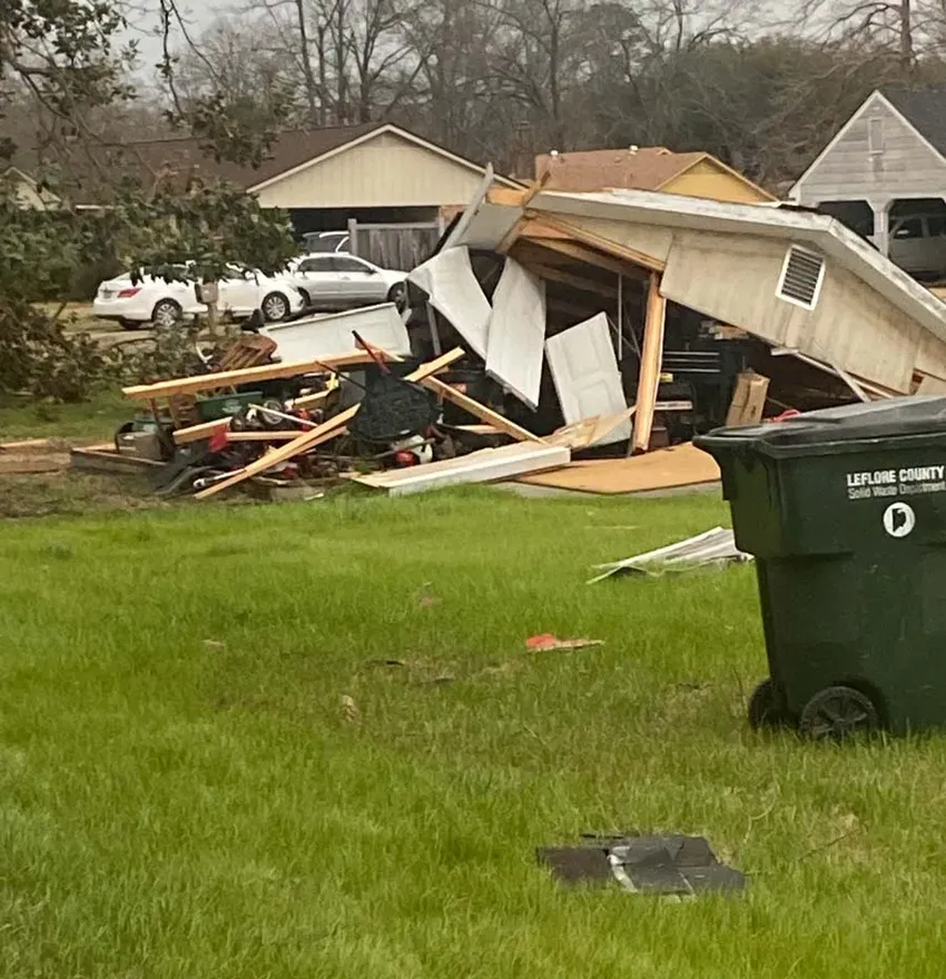 Among the damaged structures was the Leflore County home of Beth and Glen Stevens, located on County Road 166. Beth is the executive director of the Greenwood-Leflore County Chamber of Commerce, and Glen is the principal at Bankston Elementary School.