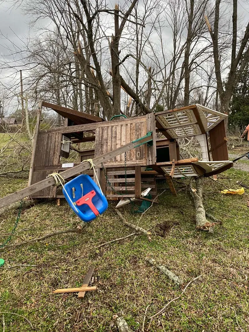 Besides the destroyed barn, the house suffered major roof damage, and uprooted trees were everywhere, she said.