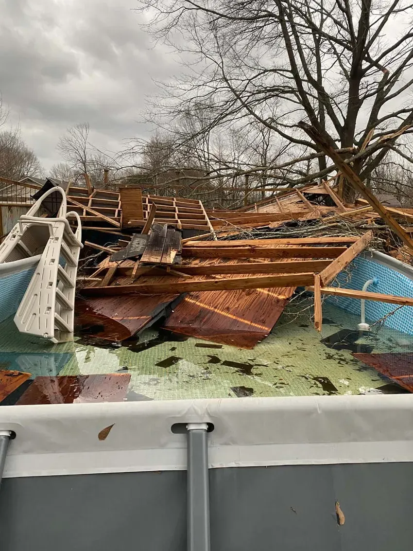 Beth posted to Facebook after the tornado passed that it “was NO JOKE. Been in the bathtub, came over our house. Water sucked out of sinks and toilets. House shaking. Our barn is gone. Most of it in the pool. Trees down. Debris everywhere. I’m scared to death. Please Lord keep us safe.”