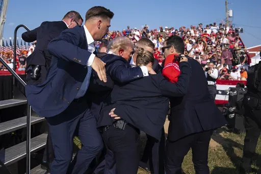 The images filled television screens across a rattled country on a hot Saturday evening — former President Donald Trump reaching for his bloodied ear as he moved down to the floor of a stage at a Pennsylvania campaign rally and U.S. Secret Service agents rushing to surround him.