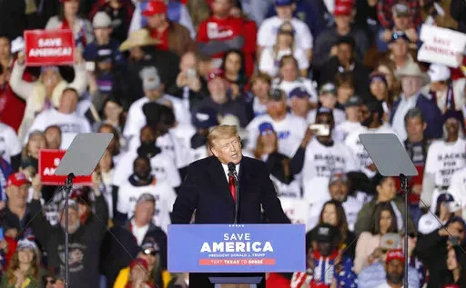 NEW YORK (AP) — Looking out at a sea of faces at a Texas fairground, most of them white, former President Donald Trump seethed about his legal troubles and blamed them on malicious prosecutors.