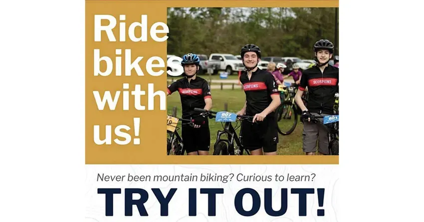 This event is free and for students in fifth through twelfth grades so that they can discover the basics of mountain biking by riding with riders and licensed mountain bike coaches from the East Mississippi Scorpions Composite Mountain Bike Team.