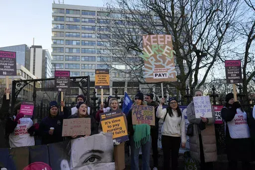 LONDON (AP) — Tens of thousands of nurses and ambulance staff walked off the job in the U.K. on Monday in what unions called the biggest strike in the history of the country's public health system.