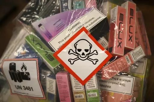 LONDON (AP) — Britain's government will ban the sale of disposable vapes and limit their cornucopia of flavors to prevent children from becoming addicted to nicotine, officials said Monday. It also plans to stick to a contentious proposal to ban today’s young people from ever buying cigarettes.