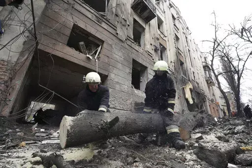 On the battlefield, Kharkiv regional governor Oleh Syniehubov said four people were injured Sunday when a Russian S-300 missile fell near an apartment block in Kharkiv city, and another was hurt when a missile hit a university building. Video showed the building hit was the National Academy for Urban Economy, about 700 meters from the city's central square.