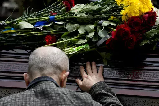 In Kyiv. the bells of St. Michael’s cathedral tolled as four soldiers carried Ratushnyi's coffin to the memorial service Saturday morning, held outdoors in the church's sunlit courtyard. Poppies and a traditional loaf of bread were placed on the coffin covered with Ukraine’s blue and yellow flag.