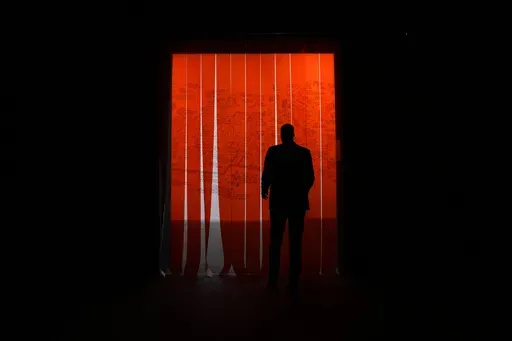 Ukraine returns to the Biennale with two installations that, in the gentlest possible way, serve as a reminder that war continues to rage in Europe. The pavilion in the Arsenale has been decked out in black-out materials to represent ad-hoc, if futile protective measures ordinary Ukrainians are taking against the threat of Russian bombardment.