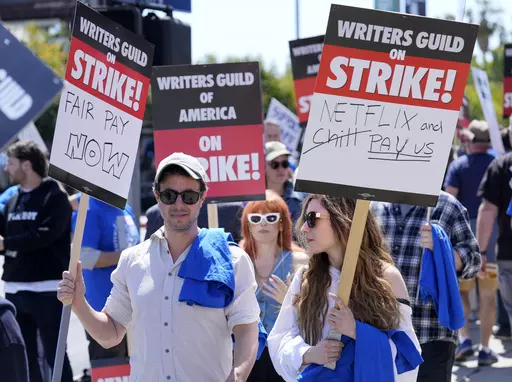 LOS ANGELES (AP) — Hollywood writers picketing to preserve pay and job security outside major studios and streamers braced for a long fight at the outset of a strike that immediately forced late-night shows into hiatus, put other productions on pause and had the entire industry slowing its roll.